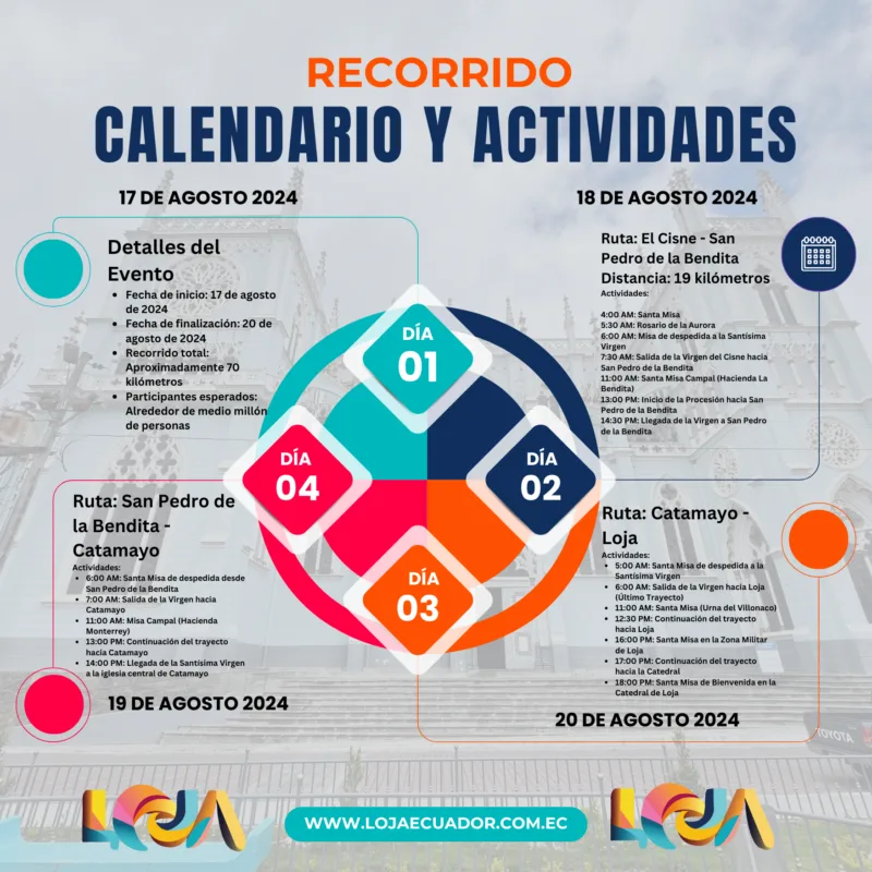 - Martes 20 de agosto (00:00): El tramo entre Loja y Catamayo será cerrado para completar el trayecto de la Virgen del Cisne hacia su destino final.
