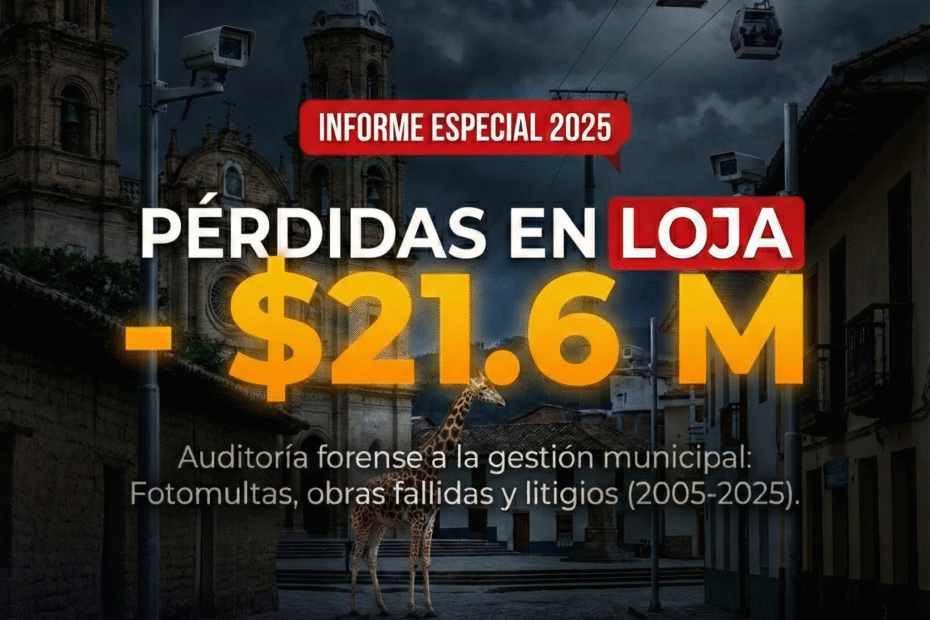 La gestión pública en Loja atraviesa una crisis estructural. Un análisis forense de las últimas dos décadas (2005-2025) revela un escenario alarmante: el cantón ha sufrido un perjuicio económico estimado en más de $21.6 millones de dólares.